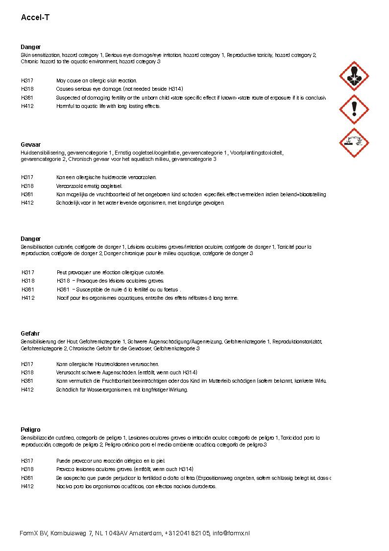 BELANGRIJK: De verwerkingstijd (potlife) wordt drastisch verminderd in verhouding tot de hoeveelheid Accel-T™ die wordt toegevoegd. Ook de viscositeit van rubber zal toenemen. Mix, vacuüm en giet snel.
