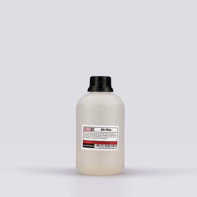 Verdikkingsmiddel voor tin en platina siliconenrubbers. Een paar gewichtsprocent verandert een vloeibare siliconen in een pasteuze kwastbare massa.