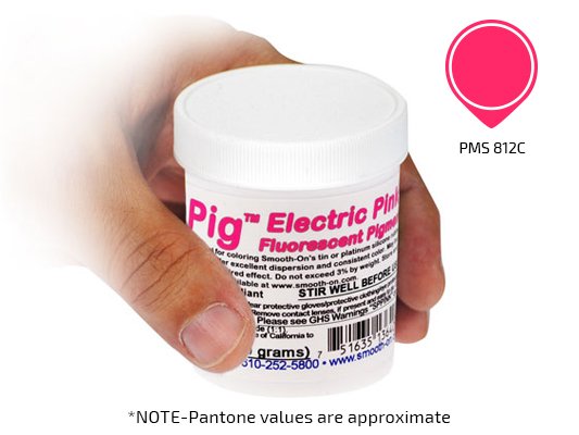 Silc Pig™ Electric Fluorescent Silicone Pigments are used for coloring tin-cure silicone rubber compounds such as Mold Max™ translucent ‘T’ Series products and platinum-cure silicones such as Dragon Skin™ and Ecoflex™ rubbers. Silc Pig™ Electric Fluorescent Pigments also work well with Smooth-On’s skin effects systems such as Psycho Paint™ and Skin Tite™. The fluorescent or “glow” effect is maximized under ultra-violet light or “black light.” The most dramatic color effect is realized when a Silc Pig™ Electric Fluorescent Pigment is used with a clear or translucent silicone.What makes castings made with Silc Pig™ Electric Fluorescent Pigments appear to glow? When you add Silc Pig™ Electric Fluorescent Pigments to a silicone, more ultraviolet light from the cured material is visible to your eye vs. castings made with standard Silc-Pig™ pigments. Castings appear brighter in ambient light and appear to glow under UV light (black light).Features- Silc Pig™ Electric Fluorescent Silicone Pigments are concentrated, so a little goes a long way when coloring Smooth-On silicone products.Custom colors are possible by blending different Silc Pig™ Electric Fluorescent colors.