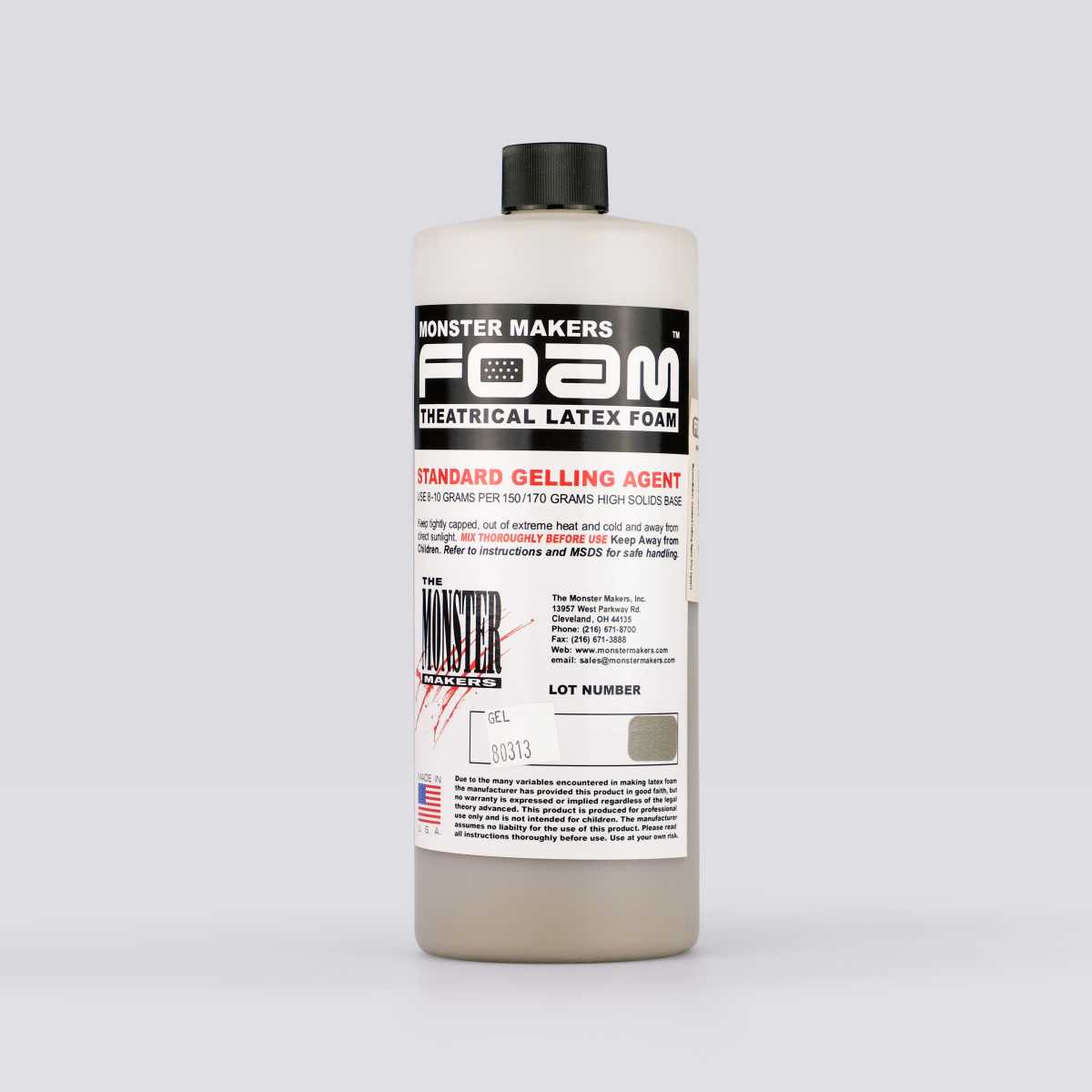 Dit is ons standaard stollingsmiddel dat bij elk Monster Makers Foam Latex Kit is inbegrepen. Het stollingsmiddel werkt als een vertraagd werkend stollingsmiddel, waardoor het vloeibare schuim verandert in een semi-vaste massa. Afhankelijk van een aantal factoren, waaronder hoeveel ammoniak aanwezig is in het schuim op het moment van toevoeging, zal het stollingsproces een chemische overgang starten waardoor het schuim op een vertraagde manier van toestand verandert.