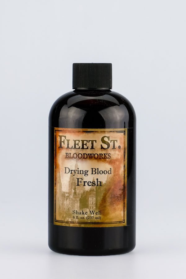 Fleet Street Bloodworks, Fresh 8 oz/240 ml Welcome to Fleet Street Bloodworks and the most unique theatrical blood on the market. Made from FDA approved pigments, Fleet Street Drying Bloods are designed for use on both skin and hair and stay moist looking, even when dry and they stay where they're placed, without migrating or dissipating as the day wears on.x000b “Fresh”, a vibrant natural tone. Fleet Street Drying Bloods allow the makeup artist to layer the bloods to get a deep sense of color and realism. The Drying Bloods work the same on all appliance materials including both jacketed and un-jacketed silicones as well as temporary tattoos without beading.