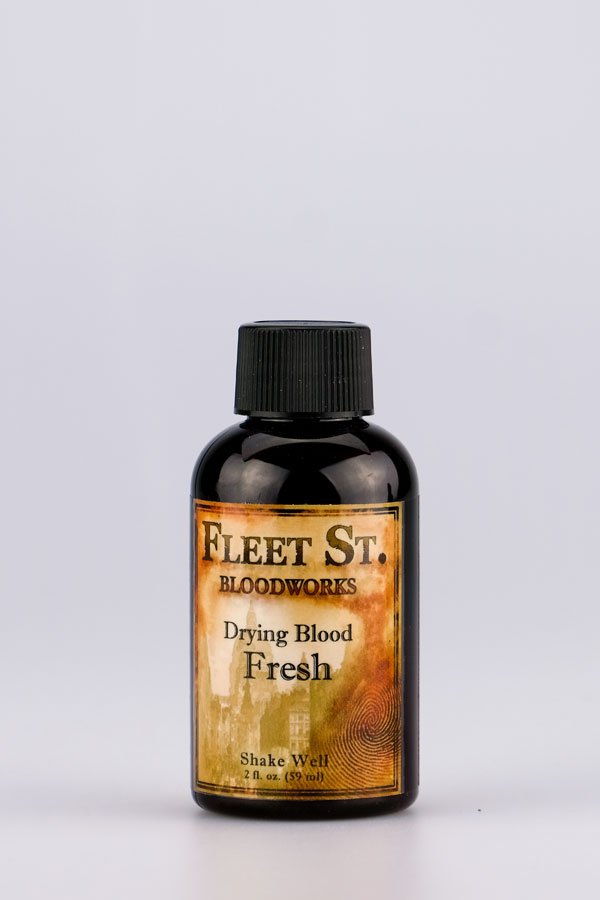 Fleet Street Bloodworks, Fresh 8 oz/240 ml Welcome to Fleet Street Bloodworks and the most unique theatrical blood on the market. Made from FDA approved pigments, Fleet Street Drying Bloods are designed for use on both skin and hair and stay moist looking, even when dry and they stay where they're placed, without migrating or dissipating as the day wears on.x000b “Fresh”, a vibrant natural tone. Fleet Street Drying Bloods allow the makeup artist to layer the bloods to get a deep sense of color and realism. The Drying Bloods work the same on all appliance materials including both jacketed and un-jacketed silicones as well as temporary tattoos without beading.