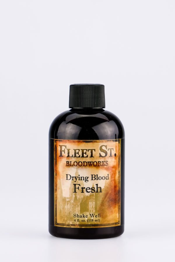 Fleet Street Bloodworks, Fresh 8 oz/240 ml Welcome to Fleet Street Bloodworks and the most unique theatrical blood on the market. Made from FDA approved pigments, Fleet Street Drying Bloods are designed for use on both skin and hair and stay moist looking, even when dry and they stay where they're placed, without migrating or dissipating as the day wears on.x000b “Fresh”, a vibrant natural tone. Fleet Street Drying Bloods allow the makeup artist to layer the bloods to get a deep sense of color and realism. The Drying Bloods work the same on all appliance materials including both jacketed and un-jacketed silicones as well as temporary tattoos without beading.