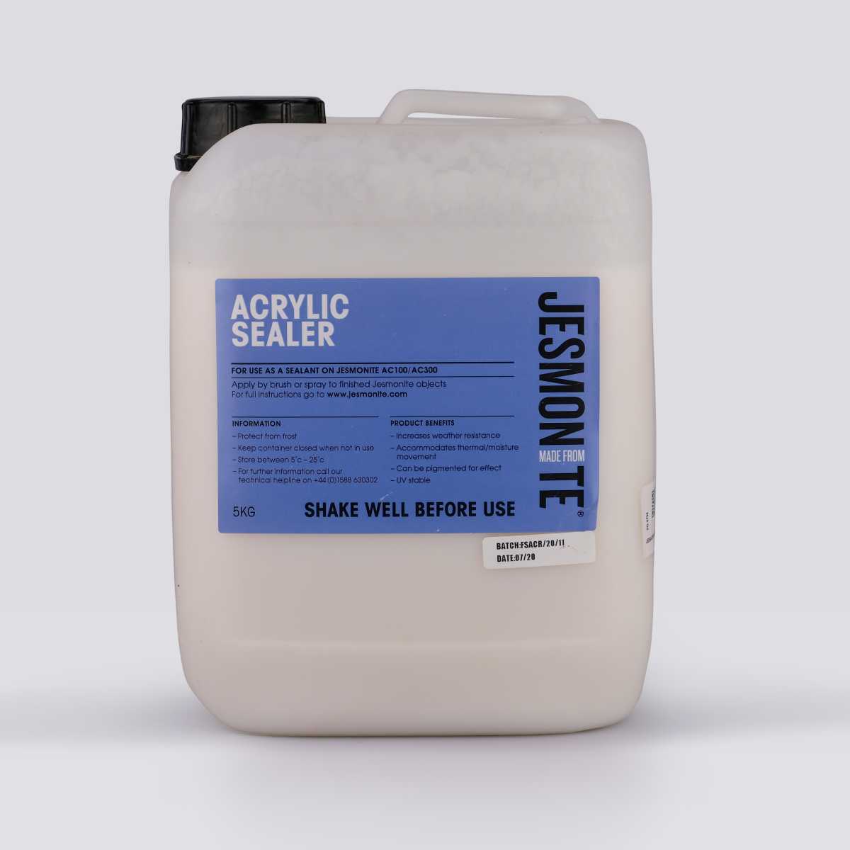 INTRODUCTIEAcryl Sealer is een zuivere acrylcoating voor AC100. Het is duurzaam, flexibel en UV-bestendig. De formulering is verbeterd om het materiaal een matter uiterlijk te geven en het gemakkelijker aan te brengen met een kwast of spuitpistool. Afhankelijk van de heersende omstandigheden moeten producten die zijn afgedicht met Acryl Sealer om de 6-10 jaar opnieuw worden gecoat. Het is ook compatibel met AC300, maar biedt niet hetzelfde niveau van externe bescherming. Projectspecifiek advies kan worden verkregen door contact op te nemen met onze technische afdeling op +31 20 4182105.TOEPASSINGWe raden aan om twee lagen Acryl Sealer aan te brengen op oppervlakken met een lage porositeit, zoals AC100, waarbij de eerste laag verdund wordt met 10-20% water. Het verdunnen van de eerste laag zal de chemische hechting van de Acryl Sealer op het oppervlak van het materiaal bevorderen. De tweede laag wordt aangebracht zodra de eerste laag droog aanvoelt. Laat de eerste laag niet volledig drogen voordat u de tweede laag aanbrengt. In principe heeft het aanbrengen van meerdere dunne lagen de voorkeur boven één dikke laag.Acryl Sealer moet worden aangebracht met een kwast van hoge kwaliteit of met een schone, hoogwaardige, dichte schuimroller, gelijkmatig over het oppervlak verdeeld. Zorg ervoor dat alle oppervlakken schoon, droog en vrij van vet of olie zijn.Acryl Sealer kan ook worden verdund met water en gepigmenteerd met Jesmonite Paste Pigments om kleurwassingen te creëren en een patina toe te voegen of gietstukken te verouderen.