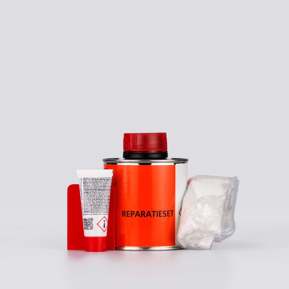 Reparatieset voor reparatie van polyester producten. Set bestaat uit polyesterhars, tube verharder, glasmat, mengbeker en spatel. Kleur: transparant. Verpakking: 250 gram