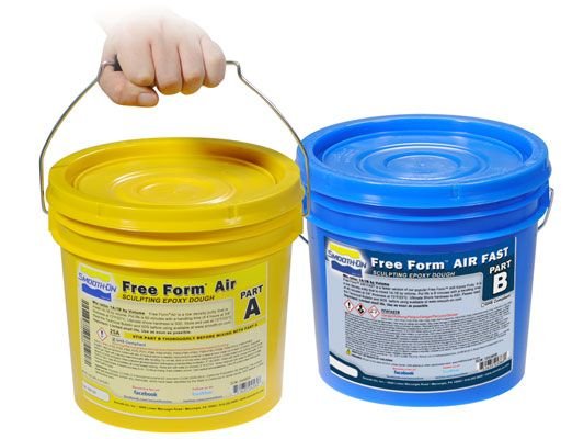 Free Form™ AIR FAST is een gebruiksvriendelijke epoxy die binnen enkele minuten uithardt tot een harde, sterke en extreem lichte kunststof. Delen A en B worden in gelijke hoeveelheden gedoseerd en met de hand gemengd. Gebruikt bij kamertemperatuur, is de verwerkingstijd 6 minuten bij een massa van 60 gram en een ontvormstijd van 30 minuten (kleefvrij, harde ondergrond). Epoxy is gemakkelijk te kleuren met UVO™ kleurpigmenten. U kan gladmaken, textureren, beeldhouwen of stempelen terwijl epoxyplamuur zich in de "groene" staat bevindt. Uitgeharde epoxy is licht genoeg om in water te drijven en kan gemakkelijk worden gesneden, geschuurd, bewerkt en geverfd voor afwerking. Het is compatibel met originele Free Form™ AIR, Free Form™ AIR HT en Free Form™ AIR Fire Safe.KENMERKENToepassingen: Free Form™ AIR FAST wordt gebruikt voor snelle "ruwe vorm"-projecten, het opvullen van holtes en reparatietoepassingen. Epoxy hecht aan een verscheidenheid aan kunststoffen (urethaan, PVC, enz.), metalen, hout, EPS-schuim, papier, keramiek, gips, enz. Het kan worden gebruikt voor een verscheidenheid aan snelle reparatietoepassingen, waaronder reparaties aan zee; het zal zelfs onder water uitharden.Epoxy Tooling - gebruik als fileermateriaal of voor mal / armatuurconstructie.Lamineren - U kan Free Form™ AIR FAST tussen lagen EpoxAmite™ en glasvezeldoek, koolstof of andere vezels voor het maken van lichtgewicht composietonderdelen.- Dikte 1,27 cm - verwerkingstijd is 6 minuten, ontvormtijd is 30 minuten, volledige uitharding in 24 uur.- Dikte 0,95 cm - verwerkingstijd is 8 minuten, ontvormtijd is 45 minuten, volledige uitharding in 24 uur.- Dikte 0,32 cm - verwerkingstijd is 10 minuten, ontvormtijd is 2 uur, volledige uitharding in 24 uurMengverhouding per volume 1A:1B - Shore-hardheid 60D - Kleur grijs