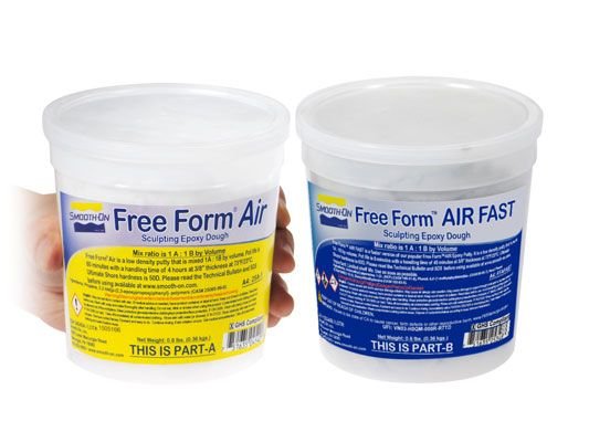 Free Form™ AIR FAST is een gebruiksvriendelijke epoxy die binnen enkele minuten uithardt tot een harde, sterke en extreem lichte kunststof. Delen A en B worden in gelijke hoeveelheden gedoseerd en met de hand gemengd. Gebruikt bij kamertemperatuur, is de verwerkingstijd 6 minuten bij een massa van 60 gram en een ontvormstijd van 30 minuten (kleefvrij, harde ondergrond). Epoxy is gemakkelijk te kleuren met UVO™ kleurpigmenten. U kan gladmaken, textureren, beeldhouwen of stempelen terwijl epoxyplamuur zich in de "groene" staat bevindt. Uitgeharde epoxy is licht genoeg om in water te drijven en kan gemakkelijk worden gesneden, geschuurd, bewerkt en geverfd voor afwerking. Het is compatibel met originele Free Form™ AIR, Free Form™ AIR HT en Free Form™ AIR Fire Safe.KENMERKENToepassingen: Free Form™ AIR FAST wordt gebruikt voor snelle "ruwe vorm"-projecten, het opvullen van holtes en reparatietoepassingen. Epoxy hecht aan een verscheidenheid aan kunststoffen (urethaan, PVC, enz.), metalen, hout, EPS-schuim, papier, keramiek, gips, enz. Het kan worden gebruikt voor een verscheidenheid aan snelle reparatietoepassingen, waaronder reparaties aan zee; het zal zelfs onder water uitharden.Epoxy Tooling - gebruik als fileermateriaal of voor mal / armatuurconstructie.Lamineren - U kan Free Form™ AIR FAST tussen lagen EpoxAmite™ en glasvezeldoek, koolstof of andere vezels voor het maken van lichtgewicht composietonderdelen.- Dikte 1,27 cm - verwerkingstijd is 6 minuten, ontvormtijd is 30 minuten, volledige uitharding in 24 uur.- Dikte 0,95 cm - verwerkingstijd is 8 minuten, ontvormtijd is 45 minuten, volledige uitharding in 24 uur.- Dikte 0,32 cm - verwerkingstijd is 10 minuten, ontvormtijd is 2 uur, volledige uitharding in 24 uurMengverhouding per volume 1A:1B - Shore-hardheid 60D - Kleur grijs