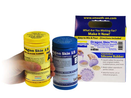 Dragon Skin™-siliconen zijn hoogwaardige vloeibare siliconenverbindingen met platinium uitharding die worden gebruikt voor een verscheidenheid aan toepassingen, variërend van het creëren van huideffecten en andere speciale filmeffecten tot het maken van productiemallen voor het gieten van verschillende materialen. Vanwege de uitstekende fysische eigenschappen en flexibiliteit van Dragon Skin™-rubbers worden ze ook gebruikt voor medische prothesen en dempende toepassingen. Dragon Skin™-rubbers worden ook gebruikt voor verschillende industriële toepassingen en hebben een constante servicetemperatuurbereik van (-53°C tot +232°C).Kenmerken:Tijd Getest, Veelzijdig Materiaal voor Speciale Effecten - Zacht, supersterk en rekbaar, Dragon Skin™ wordt over de hele wereld gebruikt om spectaculaire huid- en creatuureffecten te creëren. Een oneindig aantal kleureffecten kan worden bereikt door Silc Pig™-siliconepigmenten of Cast Magic™-effectenpoeders toe te voegen.Makkelijk te Gebruiken - Dragon Skin™-siliconen worden gemengd in een verhouding van 1A:1B op gewicht of volume. Vloeibare rubber kan worden verdund met Silicone Thinner™ of verdikt met THI-VEX™. Rubber geneest bij kamertemperatuur (23°C) met verwaarloosbare krimp. Vacuüm ontgassing wordt aanbevolen om luchtbellen in het uitgeharde rubber te minimaliseren.