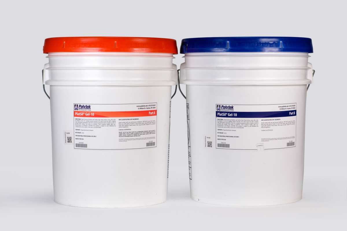 PlatSil® Gel-10 siliconenrubber is een tweedelig, platina-gekatalyseerd, vloeibaar siliconensysteem dat uithardt (RTV) tot een melkwit Shore A10-rubber. Deze siliconen worden meestal gebruikt om prothetische apparaten te maken (in combinatie met (Smith's Theatrical Prosthetic) Deadener of PlatSil® Deadener LV), voor het maken van lifecasts en het maken van mallen.PlatSil® Gel-10 is getest door een onafhankelijk laboratorium en bleek te voldoen aan 21 CFR 177.2600 (zoals gepubliceerd in de Code of Federal Regulations) voor rubberen artikelen die bedoeld zijn voor herhaaldelijk gebruik met voedselcontactoppervlakken wanneer nauwkeurig gemeten, grondig gemengd en volledig genezen.ALLEEN VOOR INDUSTRIEEL/PROFESSIONEEL GEBRUIK.Mengverhouding op volume: 1A: 1BMengverhouding op gewicht: 1A: 1BShore hardheid: A10Verwerktijd: 6 min.Ontvormtijd: 30 min.Uitgeharde kleur: melkachtig witGemengde viscositeit: 15.000 cPSpecifiek volume: 884 cm³/kgSoortelijk gewicht: 1.1Maximale rek: 970 %Treksterkte: 228 psiDie B Scheursterkte: 80 pliDie T Scheursterkte: 27 pliRemming van uitharding: Verontreiniging door zwavel (bijv. klei op zwavelbasis), aminen, tinverbindingen, uitgeharde polyesterhars, sommige verven en sommige siliconenrubbers kunnen de uitharding van platina uithardende rubbers belemmeren.