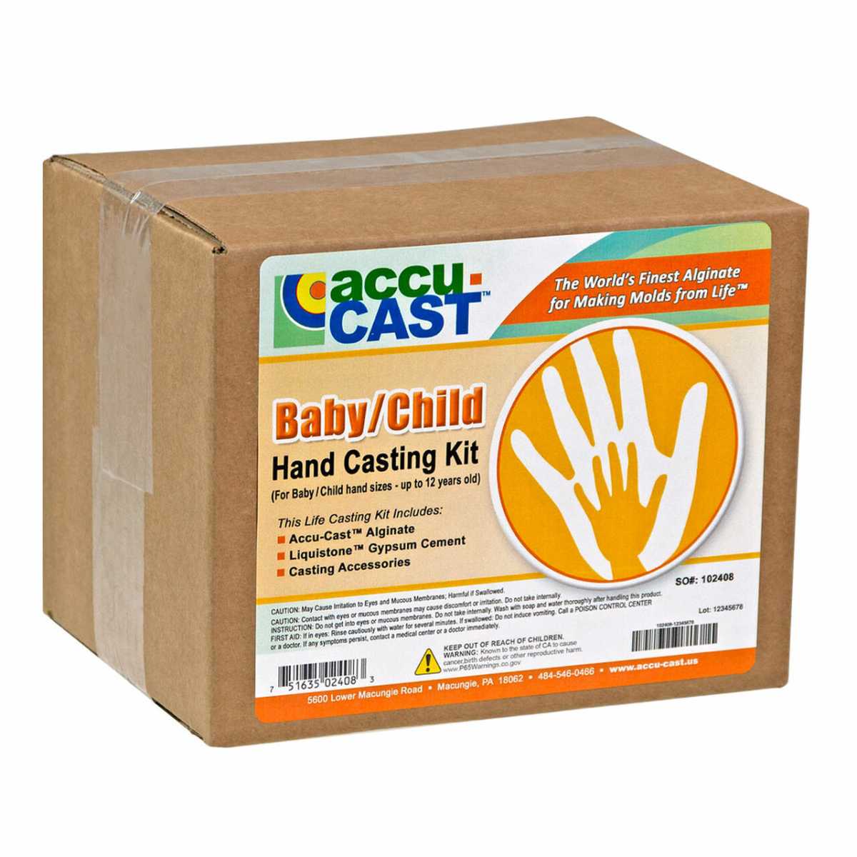 Ook u kunt nu een hard steenafgietsel maken met de Accu-Cast™ Volwassen Hand Casting Kit. Maak een afgietsel van één of twee volwassen handen met onze complete volwassen handgietset. Een handsculptuur maken met deze kit is erg leuk en een geweldige manier om deze fascinerende kunstvorm te leren. Zeer populair item voor Valentijnsdag. Geweldig huwelijkscadeau. Wacht niet tot het laatste moment om te bestellen.De kit bevat alles dat u nodig heeft om de vorm te maken. (behalve water)Moeilijkheidsgraad 2/10Kit bevat:- Een zak HandGel™ 570 alginaat - 680 gr- Een zak LiquiStone™ gips cement - 1,58 kg- Een 3,79 L vormemmer- Een zakje klei voor lange vingernagels- Een zakje LiquiStone™ voor het vullen van kleine bubbels, etc.- Geïllustreerde handleiding