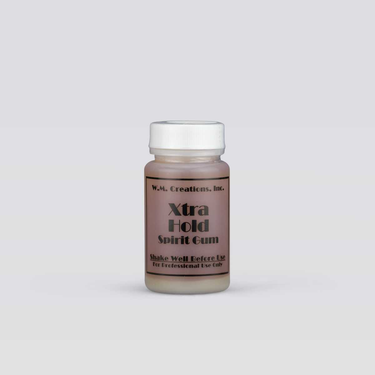 Spirit Gum Xtra Hold - Used for the application of fine hair lace and facial pieces onto foam, gelatin, silicone appliances and skin. Adhesion is accomplished by applying adhesive to the back of the lace and on the skin with a brush or a cotton tipped applicator, letting the adhesive set for 10 seconds and gently pressing lace into place with a comb or nylon stocking. AVOID APPLICATION NEAR EYES. The Xtra Hold Matte Spirit Gum is an extra strong matte spirit gum adhesive. in 60 ml bottle