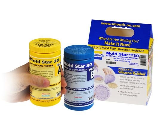 Mold Star™ rubbers zijn eenvoudig te gebruiken platina siliconen die 1A:1B op volume gemengd worden (geen weegschaal nodig). Mold Star™ siliconen hebben een relatief lage viscositeit en vacuüm ontluchting is voor de meeste toepassingen niet nodig. Mold Star™ 30 is een harder materiaal, met een 30A Shore-hardheid.KenmerkenMold Star™ siliconen harden uit tot zachte, sterke rubbers die scheurvast zijn en een zeer lage krimp op lange termijn vertonen. Mallen gemaakt met Mold Star™ gaan lang mee in uw mallenverzameling en zijn goed voor het gieten van was, gips, harsen, beton en andere materialen. Uitgehard Mold Star™ rubber is hittebestendig tot 232 °C en is geschikt voor het gieten van smeltmetaallegeringen bij lage temperatuur. Opmerking: Mold Star™ rubbers zijn niet bedoeld voor het maken van 'Brush-on' mallen.