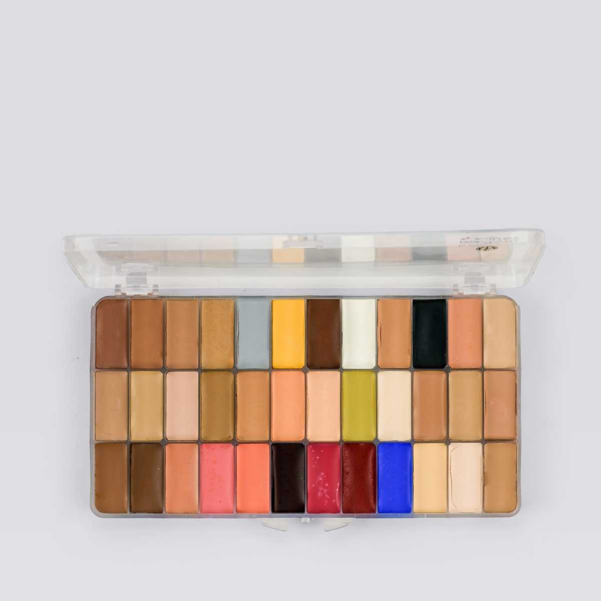 The unequalled MaqPro Grande 2 palette; Contains 36 carefully selected colours from MaqPro in one palette. Made from MaqPro's traditional natural wax based formula called "Farde Créme".Highly pigmented color. The palette is the ultimate space-saver, giving you a wide range of Farde colours to carry. Contains the Farde Crémes:1989, 51, CI, 29, 157, 155, 19, 151, 152, 145, 117, 128, TL1, TL2, TL3, 52, CR, 111, 141, 182, 181, 164, 170, 124, 91, 92, 10, 94, 41, 149, 61, 12, 12, V.2, V.3, V.4, V.5 252ml material