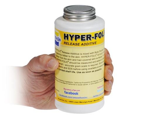 HYPER-FOLIC™ Release toevoegsel is een non-giftige, huidverzorgende vloeistof die wordt gemengd met Body Double™ siliconen malrubber voordat het rubber op de huid wordt aangebracht.HYPER-FOLIC™ helpt niet alleen om uitgehard rubber van de huid los te laten, maar laat ook uitgehard rubber los van met haar bedekte huidoppervlakken (kortgeknipte baarden, snorren, wenkbrauwen, schaamhaar, enz.)HYPER-FOLIC™ is huidveilig en gecertificeerd door een onafhankelijk laboratorium. OESO TG 439-certificering. Er zijn geen dieren gebruikt bij het testen.FunctiesVoordelen:- Body Double™ met HYPER-FOLIC™ hecht nog steeds aan zichzelf.- Weinig tot geen restanten van lossingscrème in het uitgeharde rubber zorgen ervoor dat uw mal direct gietklaar is.- Gebruikt zoals voorgeschreven, HYPER-FOLIC™ heeft een minimale invloed op de scheursterkte van Body Double™, waardoor een extreem sterke mal ontstaat- HYPER-FOLIC™ heeft geen invloed op de huidveiligheidsclassificatie van Body Double™ siliconen