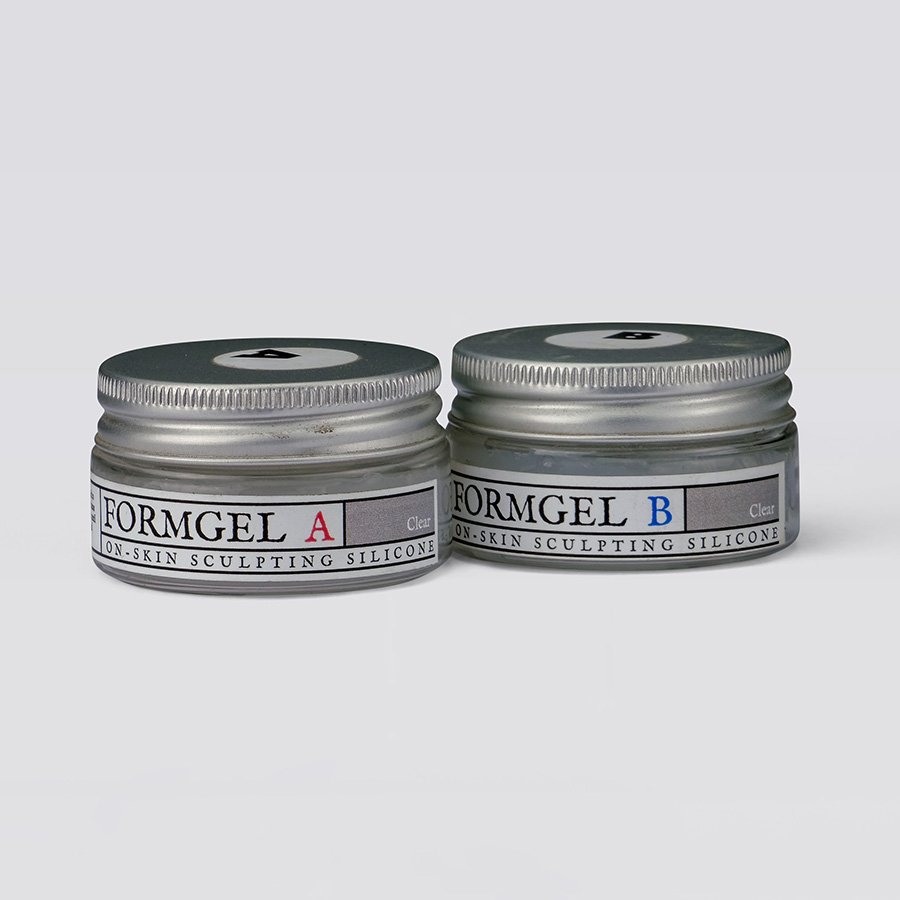 FormGel Clear /50 gram - FormGel is een unieke tweecomponenten siliconen voor make-up effecten op de huid. Het is een dikke pasta die gemakkelijk op de huid kan worden gemengd en gemodelleerd. Het is translucent en kan gemakkelijk met (silicone) pigmenten intrensiek (van binnen uit) worden gekleurd. Verschillende soorten make-up kunnen worden gebruikt om de gedroogde FormGel met na te kleuren. 25 gram een component en 25 gram b component.