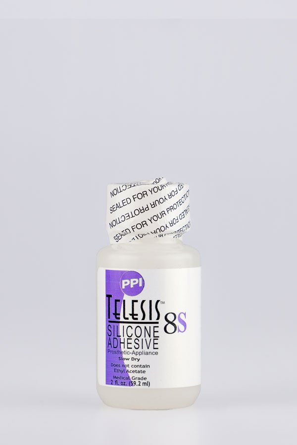 TELESIS 8 SILICONE ADHESIVE is the newest addition to the evolution of the Telesis silicone adhesives line - the most popular and widely used adhesives in the industry today. This incredibly strong and durable This is the slow-drying version. This is a medical grade, pressure sensitive adhesive, perfect for bonding silicone and latex pieces, especially around the eyes and mouth or other areas that are troublesome to glue down.