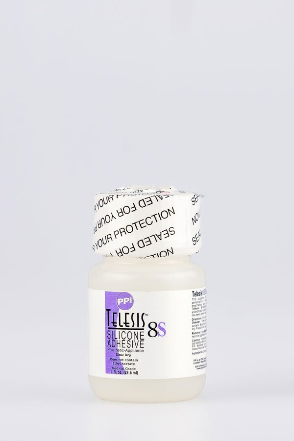 TELESIS 8 SILICONE ADHESIVE is the newest addition to the evolution of the Telesis silicone adhesives line - the most popular and widely used adhesives in the industry today. This incredibly strong and durable This is the slow-drying version. This is a medical grade, pressure sensitive adhesive, perfect for bonding silicone and latex pieces, especially around the eyes and mouth or other areas that are troublesome to glue down.