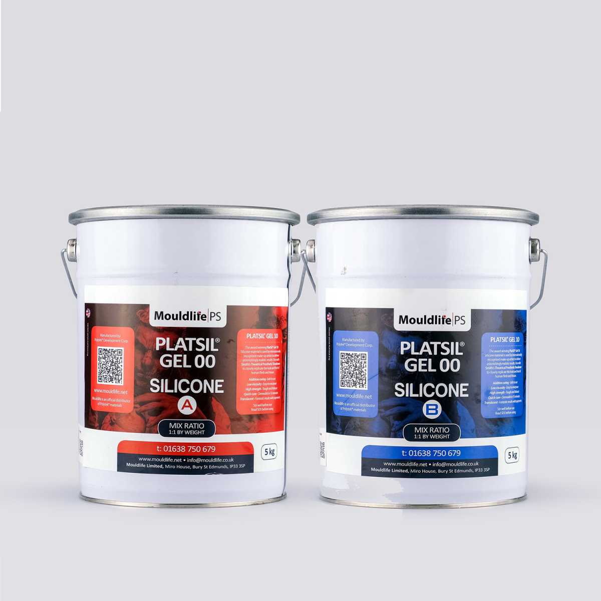 PlatSil® Gel 00 Silicone rubber is een tweedelig, platina-gekatalyseerd, vloeibaar siliconensysteem dat uithardt (RTV) tot een melkachtig wit Shore 0030 rubber. Deze siliconen worden meestal gebruikt om prothetische apparaten te maken (in combinatie met Smith's Theatrical Prosthetic Deadener) en in andere toepassingen met speciale effecten.Mengverhouding op volume: 1A: 1BMengverhouding op gewicht: 1A: 1BShore hardheid: 0030Verwerktijd: 6 min.Ontvormtijd: 30 min.Uitgeharde kleur: melkachtig witGemengde viscositeit: 22.000 cPSpecifiek volume: 884 cm³/kgSoortelijk gewicht: 1.1Maximale rek: 1,275 %Treksterkte: 154 psiDie B Scheursterkte: 56 pliDie T scheursterkte: 19 pliRemming van uitharding: Verontreiniging door zwavel (bijv. klei op zwavelbasis), aminen, tinverbindingen, uitgeharde polyesterhars, sommige verven en sommige siliconenrubbers kunnen de uitharding van het oppervlak van met platina uitgeharde rubbers belemmeren.