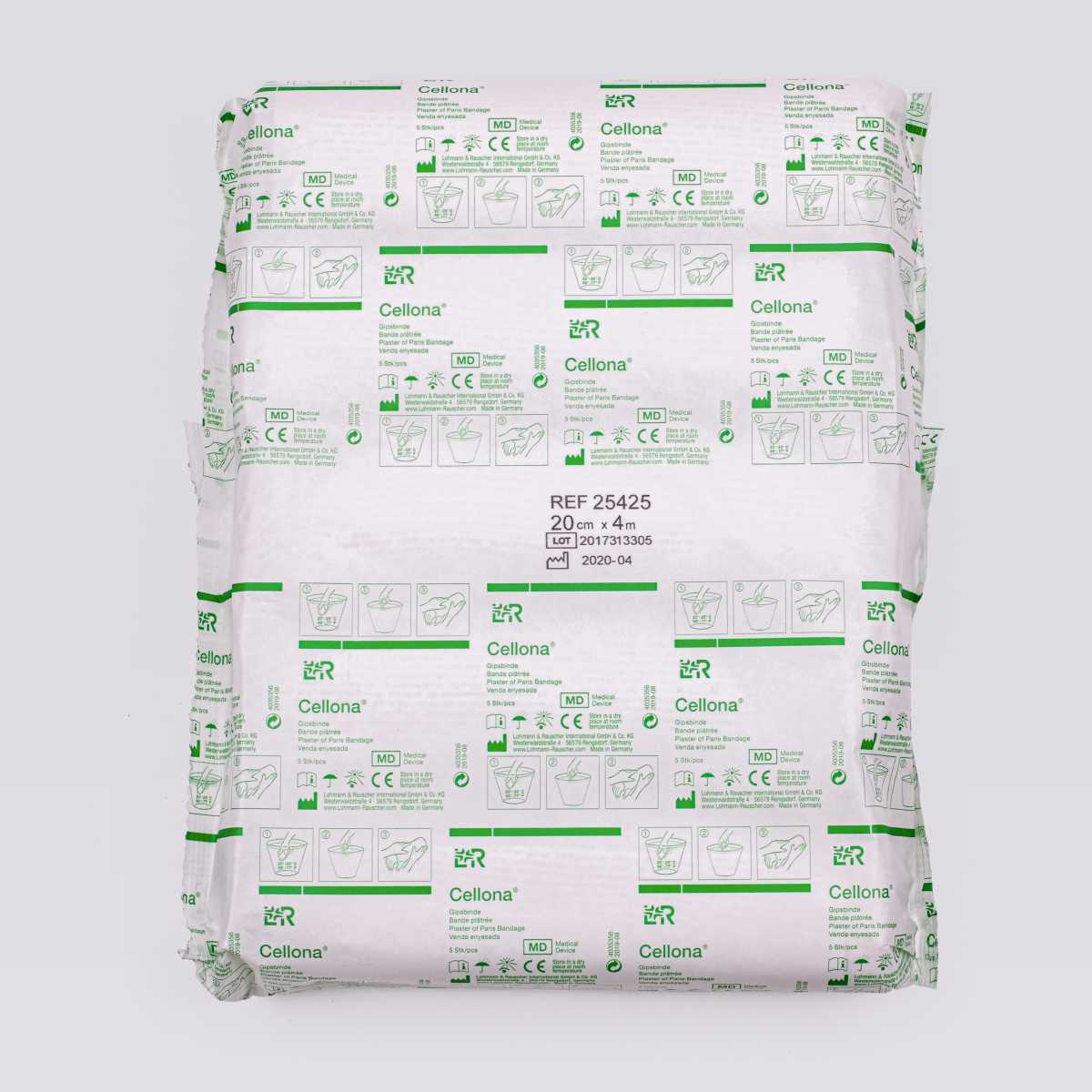 Cellona Gips Bandage 20 cm breed op rol van 4 meter in 5rol/pack; verwkingstijd 3,5 min.