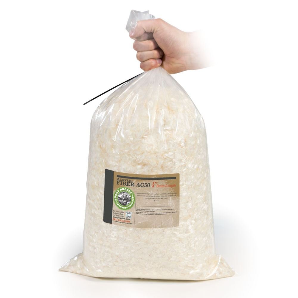 Acryl AC50-vezels zijn gemodificeerde polymeervezels die de prestaties en duurzaamheid van beton aanzienlijk verbeteren. Ze verminderen plastische krimpscheuren, zorgen voor secundaire versterking en verhogen de slagvastheid.AC50-acrylvezels hebben een lengte van 6 mm en zijn het minst zichtbaar van ons vezelaanbod, waardoor ze het meest geschikt zijn voor "face mixes" die extra versteviging vereisen. Ze bieden ook uitstekende troffelbaarheid wanneer ze worden gemengd met de Craftsman-, GFRC- of ECC-mixen.AC50-acrylvezels zijn monofilament en hebben een groter oppervlak dan gebundelde vezels. Hierdoor kunnen ze gemakkelijk een betonmix verstikken als ze een overdosis krijgen of niet zorgvuldig worden gemengd. Sommige gebruikers vinden dat het eerst mengen van de vezels in het gemengde water voor een optimale dispersie zorgt. Anderen geven er de voorkeur aan de vezels later in het mengproces langzaam in het beton te mengen. Enige experimenten worden aanbevolen om de beste oplossing voor een specifiek mengselontwerp te bepalen. Zak /450 gr