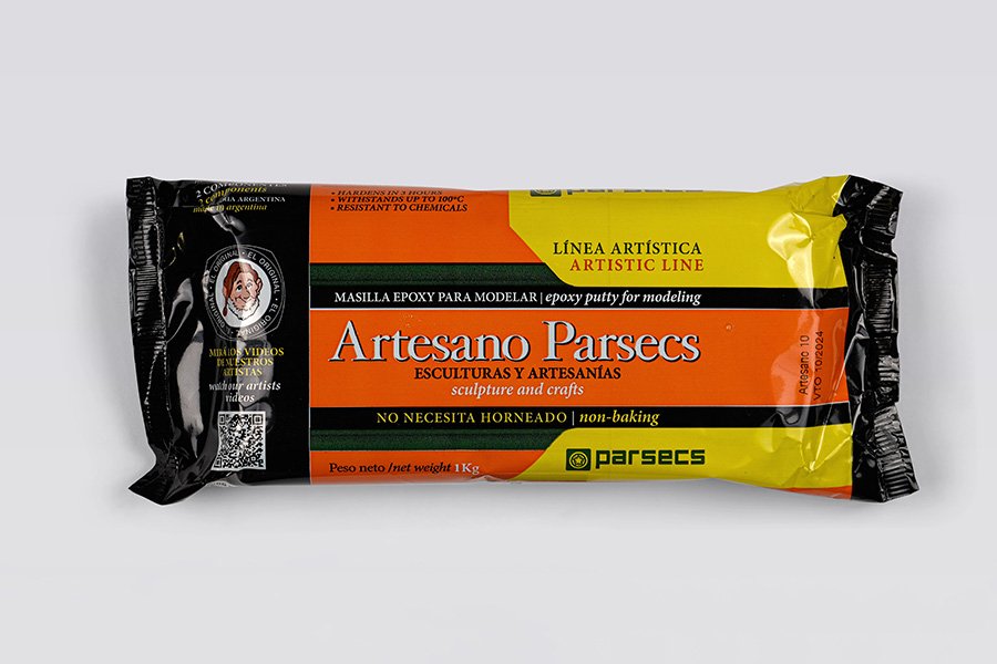 Art Putty is speciaal ontwikkeld voor artistieke doeleinden. Het belangrijkste kenmerk van deze putty is dat deze heel gemakkelijk te gebruiken is, omdat er geen voorafgaande behandeling, speciale processen of oven voor het uitharden nodig is.Gezien zijn veelzijdigheid, kneedbaarheid en uiteindelijke afwerking, is het de eerste keuze in ambachtelijke werkplaatsen wereldwijd, niet alleen in Argentinië, maar ook in Brazilië, Chili, Uruguay, Bolivia, Peru, Spanje, Italië, Frankrijk en zelfs Griekenland.Het kleeft aan vochtige oppervlakken. Bestand tegen temperaturen tot 100 ° C en is bestand tegen chemische middelen zoals zuren en verdunde alkali, vet, oliën en oplosmiddelen.Eenmaal uitgehard, kan het materiaal worden gevijld, gezaagd, geboord, gefreesd, geschuurd, gepolijst en worden geverfd.Bevat geen asbest, lood of fenol.