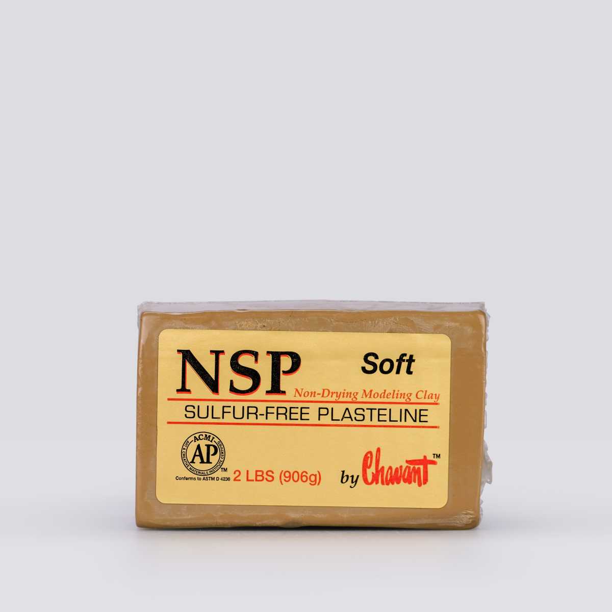 NSP (Non Sulphur Plastiline) Middel - Bruingeel plastiline. Zwavelvrije, niet uitdrogende klei. in blokken van 0,9 kg.