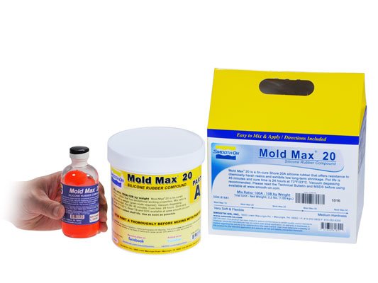 Mold Max™-siliconen zijn met tin uitgeharde siliconenrubberverbindingen met uitzonderlijke werkeigenschappen en houdbaarheid. Mold Max™-siliconen zijn voorzien van de exclusieve "Libra™"-katalysator van Smooth-On voor een lange levensduur van de bibliotheek.Mold Max™ siliconen kunnen worden gepigmenteerd met o.a. Silc Pig™ siliconen kleurstoffen. Verwerkingstijd voor de gietbare siliconen is 45 minuten en ze harden binnen een nacht uit bij kamertemperatuur.Het vacuüm ontluchten van gemengd materiaal met behulp van een vacuümpomp wordt aanbevolen.KENMERKEN- Mold Max™-siliconen reproduceren de fijnste details en zijn geschikt voor een verscheidenheid aan industriële en kunstgerelateerde toepassingen, waaronder het maken van mallen voor het reproduceren van prototypen, meubels, beeldhouwwerken en architecturale elementen.- Mold Max™ 20 kan worden verdikt met THI-VEX™-verdikker voor 'brush-on' toepassingen - Shore-hardheid 20 A - Kleur Lichtroze - Mengverhouding op gewicht 100A : 10B- Mold Max™-siliconen kunnen worden gebruikt om een verscheidenheid aan materialen te gieten, waaronder was, gips, laagsmeltende legeringen/metalen en urethaan-, epoxy- of polyesterharsen (zonder gebruik van een lossingsmiddel).