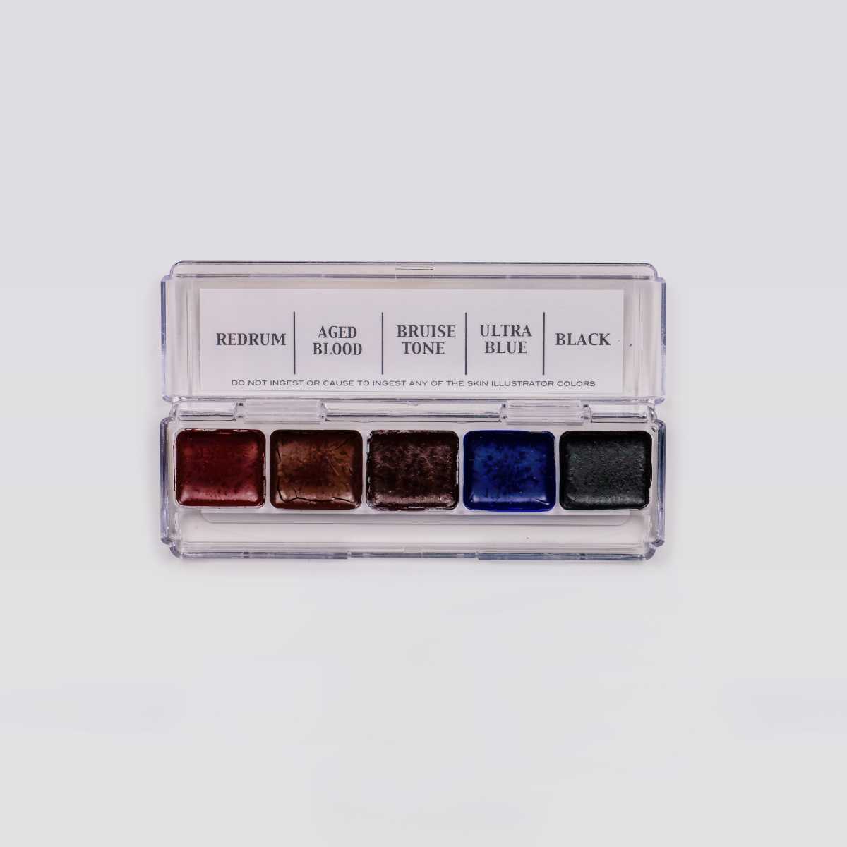 The Skin Illustrator FormX Detailer was custom designed for maximum usability. Paired with the FormX Basics Paletteits the perfect set for almost any make-up challenge; wether it's old age prosthetics or out-of-the-kit effects.Colors included are:Redrum, Aged Blood, Pastel Yellow, Bruise Tone, Midnight BrownBone, Blenheim Blush, Veintone, Coral Blue, BlackThe colors can easily be applied with a brush, sponge or mascara wand. Use it alone, or mix the colors with any of the other Skin Illustrator tones to create your own unique blend of color.You must use Skin Illustrator Activator, Skin Illustrator Slow Activator, or 99% alcohol to activate the color pigment. Do not use 70% alcohol, MEK, acetone, water or any other solvent. Removal is easy with PPI’s Telesis Beta Solv or Telesis Super Solv.