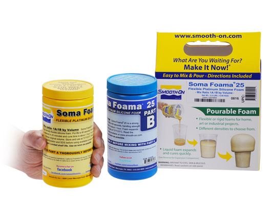 Soma Foama™ is een zacht, flexibel, tweecomponent platinasiliconen schuim dat veelzijdig en gebruiksvriendelijk is. Soma Foama™ 25 is een schuim met een hogere dichtheid dan origineel Soma Foama™ 15 dat 2-3 keer zijn oorspronkelijke volume uitzet en ontwikkelt een uniforme 400 kg/m⊃3 celstructuur. Levendige kleuren kunnen worden bereikt door Silc-Pig™ siliconen kleurpigmenten toe te voegen. Uitgehard schuim is zeer hittebestendig (bestendig tot 176 °C), waterbestendig, UV-bestendig en is bestand tegen oxidatie en ozonafbraak.ToepassingenSoma Foama™ kan worden gebruikt voor een verscheidenheid aan industriële en speciale effectentoepassingen, waaronder het maken van met schuim gevulde apparaten, vulling/zitkussen, orthesen/orthopedie, oppotten en inkapselen van elektrische circuits en trillingsdemping.