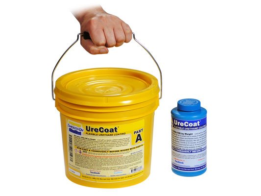 UreCoat® is een twee-componenten urethaan (A + B) die op een verscheidenheid van oppervlakken kan worden aangebracht en geborsteld om een flexibele, stevige en stootbestendige coating te bieden. UreCoat® bindt veel oppervlakken en kan worden gebruikt als flexibele coating voor uitgebreid polystyreen (EPS-schuim), stof, sommige metalen en kunststoffen, hout, touw (maak wijnstokken voor dierentuinuitstallingen) en meer. Gehard rubber is hard en UV bestand.Gebruik als flexibele verfbasis: UreCoat® is "kleurneutraal" en is makkelijk gekleurd met SO-Strong®, UVO® of Ignite® kleurstoffen om een permanente verf te creëren voor gelakte, gladde urethaanrubbers of flexibele schuimen.pot life is 8 minuten,re-coat tijd is 30 minuten,tack vrije tijd is 2 uur envolledige uitharding is 16 uur bij 73 ° C / 23 ° C.UreCoat® bevat geen ftalaten of VOC's.