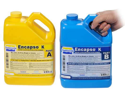 Encapso™ K is een waterhelder inkapselingsrubber dat er net zo uitziet als water en ideaal is voor een verscheidenheid aan inkapselings- en displaytoepassingen.Hoe werkt Encapso™ K? - Twee heldere vloeistoffen (deel A en deel B) worden in gelijke hoeveelheden met elkaar gemengd. Het mengsel wordt vervolgens rond kunstbloemstelen of over een object gegoten. Het mengsel verandert 's nachts van vloeibaar in een vast, zacht rubber. Na uitharding simuleert Encapso™ K water en gaat het lang mee.