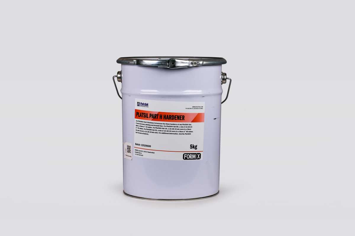 Gebruik PlatSil® deel H Verharder om de Shore-hardheid van elke PlatSil® Gel te verhogen. Het verhoogt ook de werk- en ontvormtijd. Voor PlatSil® Gel-00 geeft een mengsel van 1A:1B:1H een Shore A~10 rubber. Voor PlatSil® Gel-10 hardt een 1A:1B:1H mengsel uit tot een Shore A~20 rubber. Voor PlatSil® Gel-25 hardt een mengsel van 1A:1B:1H uit tot een Shore A~40 rubber. Overschrijd een mengverhouding van 1A:1B:1H niet. Bekijk voor meer informatie het PlatSil® Gel Technisch Bulletin.ALLEEN VOOR INDUSTRIEEL/PROFESSIONEEL GEBRUIK.