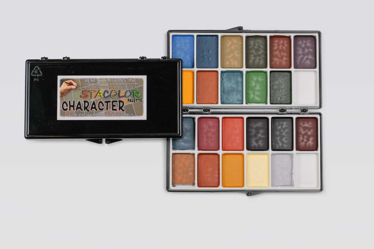 Stacolor Palette, Fullcolor Palette. Includes 22 colors. Alcohol based make-up for use on silicone, gelatin and (foam) latex prosthetics. Full colour pallete has all the skin tones and some FX colours.