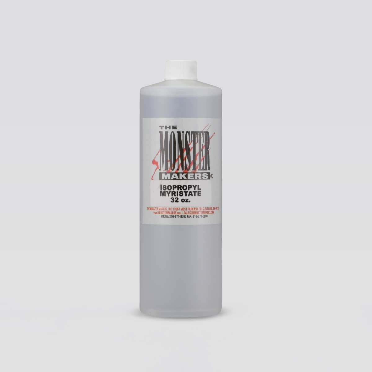 Een zeer zachte make-up remover op oliebasis die vele soorten make-up verwijdert, waaronder Pros-Aide, Protac en PAX Paints. Isopropylmyristaat (uitgesproken als meer-is-tate) is ook een fantastisch, reukloos/niet-giftig oplosmiddel voor Monster Clay. Het heeft de neiging iets langzamer te drogen dan andere oplosmiddelen zoals Mineral Spirits, maar het lost de klei zeer agressief op en is een geweldig gladmakend middel. Gebruik spaarzaam met een zachte borstel en ga verder met verschillende gebieden terwijl het oplosmiddel verdampt. Om Monster Clay tot een glasachtig oppervlak te polijsten, begin je met een glad gebied zoals de bovenkant van een hoofd. Breng een kleine hoeveelheid myristaat aan op schoon keukenpapier en wrijf in cirkelvormige bewegingen totdat de klei een glanzend oppervlak krijgt. GEBRUIK SPAARZAAM!