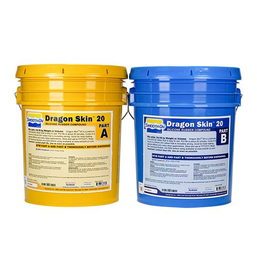 Dragon Skin™ siliconen zijn hoogwaardige platina-uithardende vloeibare siliconen die worden gebruikt voor een verscheidenheid aan toepassingen, van het creëren van skin-effecten en andere SFX effecten tot het maken van productiemallen voor het gieten van een verscheidenheid aan materialen. Vanwege de fysieke eigenschappen en flexibiliteit van Dragon Skin™ siliconen worden ze ook gebruikt voor medische protheses en dempingstoepassingen. Dragon Skin™ wordt ook gebruikt voor een verscheidenheid aan industriële toepassingen en heeft een gebruikstemperatuurbereik van een constante (-53°C tot +232°C).Dragon Skin™ 20 - Werktijd 25 minuten - Uithardingstijd 4 uur - Shore A20Geweldig voor het maken van mallen voor een verscheidenheid aan toepassingen — Dragon Skin™ siliconen kunnen worden gebruikt om uitzonderlijk sterke en scheurbestendige mallen te maken voor het gieten van gips, was, beton, harsen en andere materialen.Beproefd, veelzijdig materiaal voor speciale effecten - Zacht, supersterk en rekbaar, Dragon Skin™ wordt over de hele wereld gebruikt om spectaculaire huid- en wezeneffecten te maken. Een oneindig aantal kleureffecten kan worden bereikt door Silc Pig™ siliconenpigmenten of Cast Magic™ effectpoeders toe te voegen. Uitgehard rubber kan ook worden geverfd met Psycho Paint™.Eenvoudig te gebruiken — Dragon Skin™ siliconen worden 1A:1B gemengd op basis van gewicht of volume. Vloeibaar rubber kan worden verdund met Silicone Thinner™ of verdikt met THI-VEX™. Rubber hardt uit bij kamertemperatuur 23°C met verwaarloosbare krimp. Vacuüm ontluchting wordt aanbevolen om luchtbellen in uitgehard rubber tot een minimum te beperken.Gecertificeerde huidveilig - Uitgehard Dragon Skin™ is huidveilig en is gecertificeerd door een onafhankelijk laboratorium. OESO TG 439-certificering. Bij het testen werden geen dieren gebruikt.
