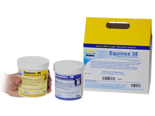 Equinox™ 38 heeft een potlife van 4 minuten met een uithardingstijd van 30 minuten. Krimp is laag en uitgehard rubber is uitzonderlijk sterk (zeer hoge treksterkte), duurzaam en bestand tegen hoge temperaturen (voor het gieten van metaallegeringen bij lage temperatuur). Ze weerstaan ook remming van genezing. Equinox™ siliconen zijn ook VOEDSELVEILIG en kunnen worden gebruikt voor culinaire toepassingen.Toepassingen zijn onder meer het maken van snelle malafdrukken van bijna elk oppervlak, orthesen/orthopedie, hoefreparatie van paarden, het maken van sieraden en meer.