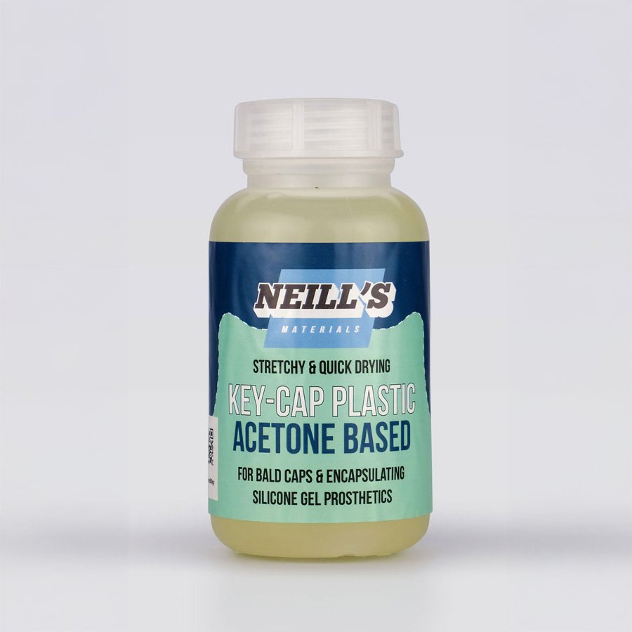 Introducing Key-Cap, Neill’s Materials very own bald cap plastic. Everything you would expect from a great quality bald cap plastic, made using our very own raw beads. Key-Cap is used for both encapsulating silicone gel prosthetics and as a bald cap plastic. It can be thinned with Acetone and the edges dissolved with Acetone. It can also be thinned in order to spray bald caps.