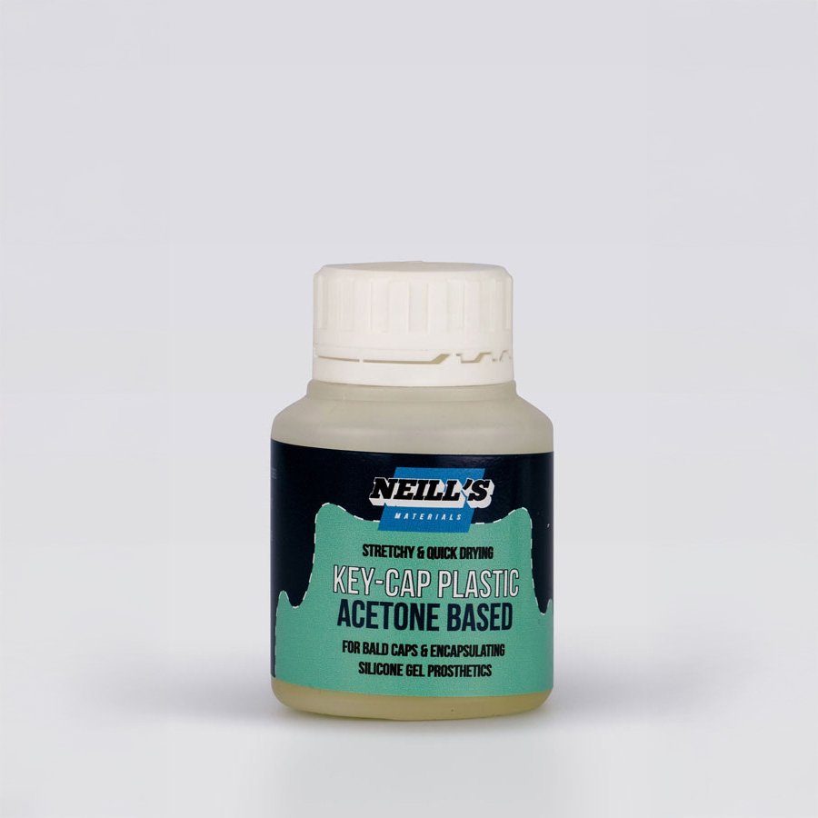 Introducing Key-Cap, Neill’s Materials very own bald cap plastic. Everything you would expect from a great quality bald cap plastic, made using our very own raw beads. Key-Cap is used for both encapsulating silicone gel prosthetics and as a bald cap plastic. It can be thinned with Acetone and the edges dissolved with Acetone. It can also be thinned in order to spray bald caps.