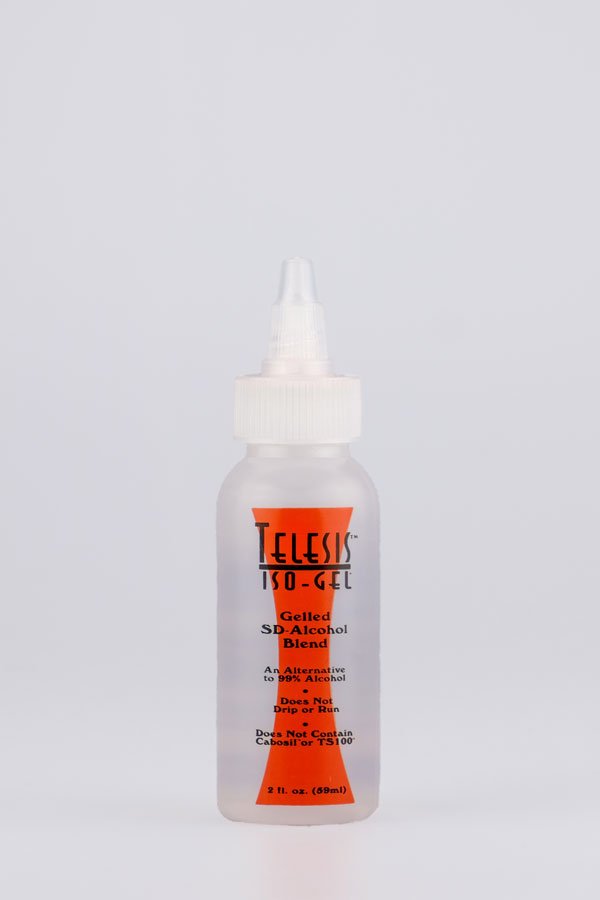 Isoprolyl Alcohol in Gel, 4 oz - This gelled version of SDA-40 alcohol and isopropanol can be used in any application where 99% isopropyl alcohol is used. ISO-GEL has a reduced alcohol scent, will not drip or run and is excellent as a vehicle for alcohol based color applications. ISO-GEL does not contain Cabosil or TS100