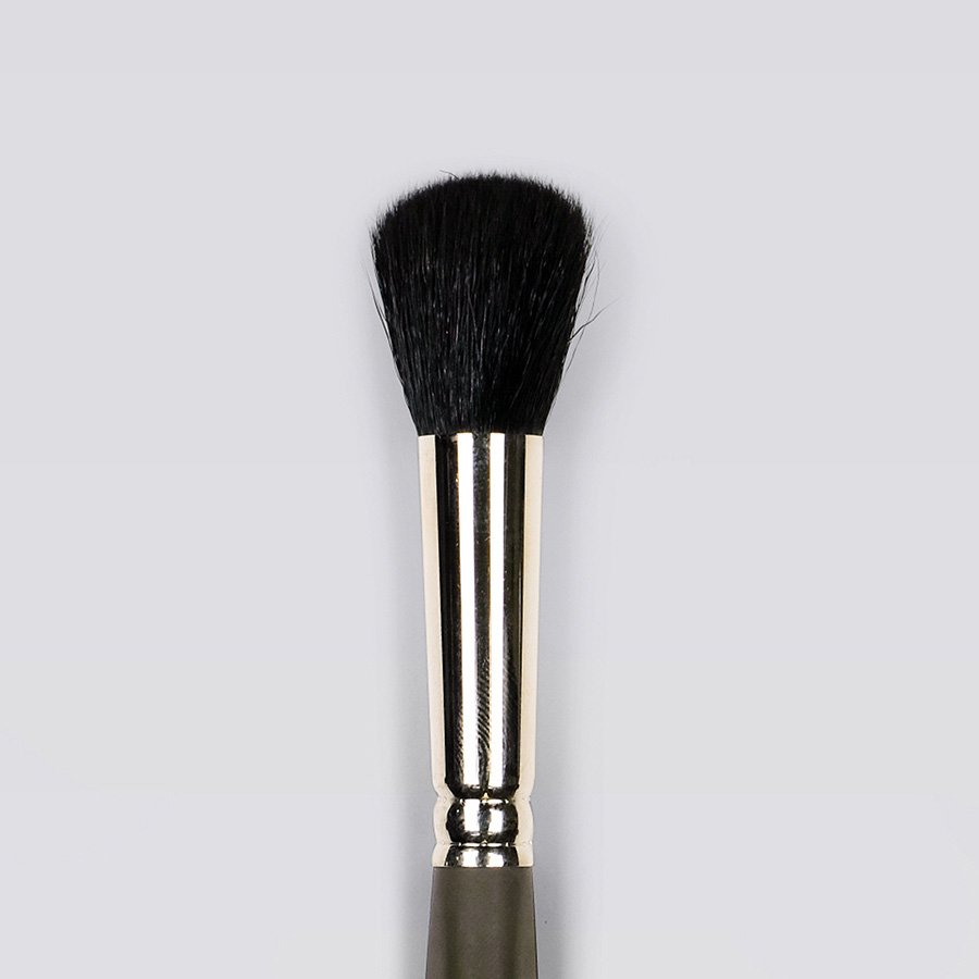Handmade European artisan brushes utilizing a variety of natural and synthetic materials and handcrafted by skilled European brush makers. All of the different series of brushes come with the same ergonomically designed handles which fit very comfortably in all hand sizes and they wont roll off of your makeup table. Our handles are matte and faceted for dexterous control of the brush. The fibers are set into seamless nickel ferrules and made with solvent resistant base paint and adhesives for a legacy makeup brush.