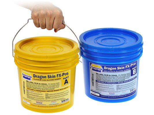 Dragon Skin™ FX-Pro™ is a soft, stable, high performance platinum silicone rubber specifically designed for creating silicone makeup appliances and skin effects. Dragon Skin™ FX-Pro™ is compatible with Skin-Tite™ silicone adhesive as well as medical grade pressure sensitive adhesives for adhering silicone appliances temporarily to the skin. Soft and stretchy FX-Pro™ has a Shore hardness of 2A. FX-Pro™ can be combined with SLACKER™ deadening agent to create a very soft silicone gel for filling encapsulated silicone pieces. An infinite number of color effects can be achieved by adding Silc-Pig™ silicone pigments. Cured rubber can also be painted with the Psycho Paint™ system.Features- Soft - Shore 2A hardness allows for softer appliances using less SLACKER™ deadening agent- Low Viscosity - combined with long working time reduces bubbles and makes pouring easier- Cures Dry - will not leach silicone fluid- Long Working Time - 10-12 minute working time is good for larger pours or injections- Fast Cure - 40 minute cure time allows for quick turnaround of castings or molds- More Workable - Do More - has a ‘gel’ stage - slushing the material into prosthetic molds is easier