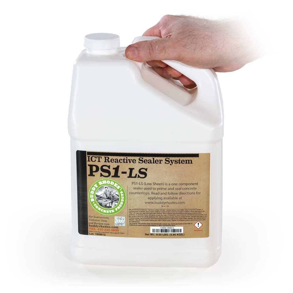 Preparation: Before You BeginConcrete Surface PreparationPreparing the concrete surface before sealing is an important first step to ensure success with any sealer. The concrete must meet three conditions before starting with the sealer application:• It should be properly cured.• It should be properly processed.• It should be clean and dry.CuringStandard practice is the allow the concrete to cure for 5-7 days after casting, adhering to good concrete curing practices. This ensures the cement matrix is maturing and the internal moisture levels have been reduced to low levels. For some concrete mixes this happens in a few days, for others it will take longer; you will need to set the time between casting and sealing based on the habits of the concrete you are working with. With Buddy Rhodes mixes, 5 days following casting is a good start, although more time should be given during cooler periods, and more time is always better if you have time to give. For best results, let your concrete cure for at least 7 days. Summary: If you want the best results, give it time. If you are in a rush, then don’t expect the best results.ProcessingThe surface of the bare concrete should be processed to a visually matte finish, with a profile, or "tooth," prior to sealing. This ensures the sealer develops a good mechanical bond with the surface. The rougher the surface is, the better the sealer will adhere. Profiling also removes residual material or contaminants that would interfere with forming a good bond. Wax and form release agents routinely transfer to the surface of the concrete during casting, and these must be removed before sealing.There are several ways to profile concrete surfaces. Acid Etching, Wet Sanding and Dry Sanding are three good options, described below.Acid Etching - Acid etching provides a "tooth" for the sealer and dissolves any weak material in the substrate that may prohibit sealer from fully penetrating and adhering. Etching is most often performed on cream finishes, or concrete that’s left untouched after it is demolded. Keep in mind acid etching mainly affects the cement paste, and will not change the surface of exposed glass, tile, or exposed stone such as quartz or granite. Etching may not entirely remove surface residue like wax or form release agents. For that we recommend light scrubbing with a non-woven abrasive pad. Muriatic acid substitutes are not recommended with ICT reactivesealers. These types of acids can cause inconsistent reactions with the sealer. After acid etching, rinse well with clean water to remove any acid residue.Wet Sanding - A popular and easy way to lightly work the surface without exposing sand grains is to hand-sand the surface using Buddy Rhodes hand pads. Use a 400-grit hand pad, as coarser grit can leave scratches and can be too aggressive. The hand pads should always be used wet to prevent scratching the concrete surface. They're a great way to remove surface residue and to lightly smooth the concrete’s surface. A wet-sanded surface can be etched to further enhancethe microscopic tooth.Dry Sanding - A method of opening the surface of the concrete or smoothing the surface of the concrete with processing methods that do not depend on the use of water. These methods include using the BR hand pads dry, or using mechanical equipment such as orbital sanders or rotary polishers with dry diamonds pads. All tooling should be attached to vacuum equipmentto control any dust that may occur during the surface processing. Cleaning & DryingThe concrete surface should be cleaned after it has been profiled, since etching or sanding concrete creates very fine residue that must be removed before sealing. Non-woven abrasive pads can be used to remove the fine residue. Rinse well with clean water. After cleaning, allow the concrete to fully dry prior to applying sealer. Dry concrete lets the sealer penetrate into the concrete, whereas wet, damp or barely dry concrete does not. A good rule of thumb is to wait a minimum of 12 hours for the concrete to dry following total saturation. Cooler shop temperatures will slow evaporation,so if the temperature is below 21°C, give the concrete more time to dry out. When in doubt, wait 24 hours.EnvironmentICT PS1 and PS1-LS are reactive sealers that benefit from warm concrete conditions. Ideal temperatures for sealer application are between 21°C-35°C. Temperatures below 21°C will slow down evaporation and the cure time of the sealer. Temperatures above 35°C will increase the chance of the sealer flashing off too quickly, usually resulting in application marks.Moisture and humidity also play an important role with these sealers. Because they are diluted with water, it’s important that the moisture from the Priming and Finish applications dry out between applications. The sealer won’t begin to fully crosslink (cure) until the water that’s in the freshly applied sealer has evaporated. Higher humidity will slow the cure time.Tools and Materials Required for Sealer Application• Small Trigger Spray Bottles• Microfiber Sponges• Microfiber Cloth• Clean Water• TimerICT PS1 and PS1-LS Application StagesStage 1 requires multiple Primer Applications using diluted PS1 or PS1-LS. Stage 2 requires multiple Finish Applications using undiluted PS1 or PS1-LS. Stage 3 requires an application of Clean and Set.Stage 1: Primer ApplicationsFirst Primer Application Technique- Begin by preparing a mixture of 1 part PS1 orPS1-LS to 1 part Water. Dampen a microfiber sponge with clean water. Pour some of the PS1+ Water mixture onto the surface of the concrete. Using the damp microfiber sponge, spreadthe mixture across the entire surface until it is fully covered with a clear film of sealer. Loadthe mixture into a spray bottle. Continue to spray and wipe the mixture onto the surface,maintaining an even, thin film for 10 minutes. Ensure the sealer does not puddle or dry out.Allow the first primer application to dry for 30 minutes