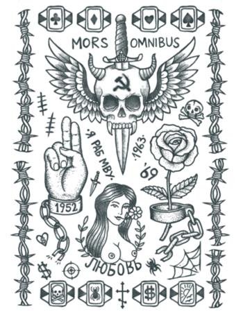 Russian Prison SetTattoo Paper Size: 29 x 21 cm (A4) Russian Prison Tattoos PR14-Realistic temporary tattoo transfer!-Easy to apply!-Special non-sharp finish for better and more realistic look!-Looks like a real tattoo when applied!-Used by professional make-up artists in film, fashion, music, theater and TV industry!-Great for fun, events, celebrations, cosplay!-Recreate yourself for a day with our tattoos!