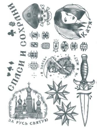 Russian Prison SetTattoo Paper Size: 29 x 21 cm (A4) Russian Prison Tattoos PR14-Realistic temporary tattoo transfer!-Easy to apply!-Special non-sharp finish for better and more realistic look!-Looks like a real tattoo when applied!-Used by professional make-up artists in film, fashion, music, theater and TV industry!-Great for fun, events, celebrations, cosplay!-Recreate yourself for a day with our tattoos!