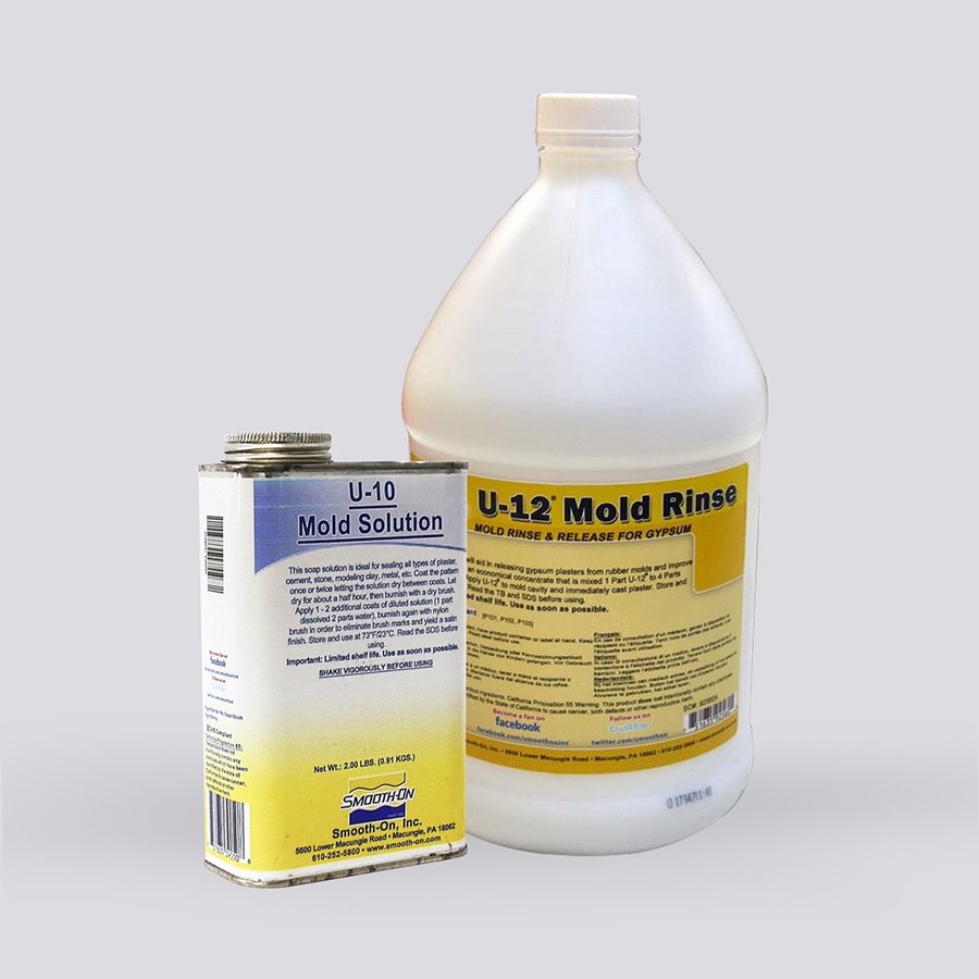 U-12® Mold Rinse & Release is an economical "non-soap" based concentrate that is diluted with water and applied to the surface of a rubber mold prior to casting gypsum plasters. Properly mixed and applied, U-12® breaks the surface tension of the mold rubber surface and allows plaster to flow and de-air better. Plaster castings cure with fewer air bubbles.It also removes residual plaster debris and eliminates plaster build-up. Regular use of U-12® Mold Rinse (especially when doing high volume