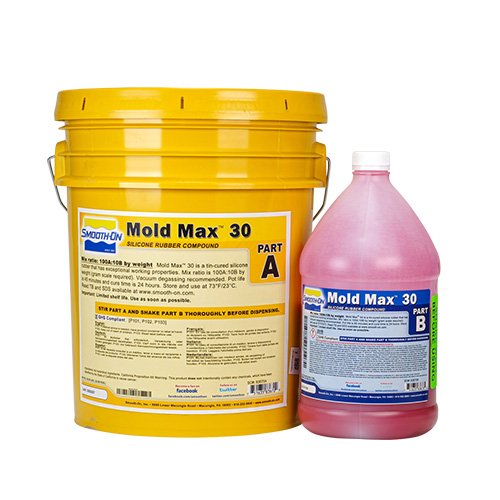 Mold Max™-siliconen zijn met tin uitgeharde siliconenrubberverbindingen met uitzonderlijke werkeigenschappen en houdbaarheid. Mold Max™-siliconen zijn voorzien van de exclusieve "Libra™"-katalysator van Smooth-On voor een lange levensduur van de bibliotheek.Mold Max™ siliconen kunnen worden gepigmenteerd met o.a. Silc Pig™ siliconen kleurstoffen. Verwerkingstijd voor de gietbare siliconen is 45 minuten en ze harden binnen een nacht uit bij kamertemperatuur.Het vacuüm ontluchten van gemengd materiaal met behulp van een vacuümpomp wordt aanbevolen.KENMERKEN- Mold Max™-siliconen reproduceren de fijnste details en zijn geschikt voor een verscheidenheid aan industriële en kunstgerelateerde toepassingen, waaronder het maken van mallen voor het reproduceren van prototypen, meubels, beeldhouwwerken en architecturale elementen.- Mold Max™ 30 kan worden verdikt met THI-VEX™-verdikker voor 'brush-on' toepassingen - Shore-hardheid 30 A - Kleur Lichtroze - Mengverhouding op gewicht 100A : 10B- Mold Max™-siliconen kunnen worden gebruikt om een verscheidenheid aan materialen te gieten, waaronder was, gips, laagsmeltende legeringen/metalen en urethaan-, epoxy- of polyesterharsen (zonder gebruik van een lossingsmiddel).