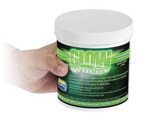 Glow Worm™ phosphorescent powders can be added to Smooth-On liquid plastics, rubbers and foams to create castings that glow in the dark after being charged with light. What sets Glow Worm™ powders apart from other glow-in-the-dark powders? Used as directed and after being light charged as recommended, castings made with Glow Worm™ powders will glow in the dark at least 10 times longer than other glow powders.Glow-in-the-dark castings are used for Halloween themed displays, home hobby projects, aquariums, store displays and more. These materials are also used for industrial marking, municipal safety applications and more. Creamsicle - Glow Color (Night) : Neon Orange- Appearance (Day) Orange