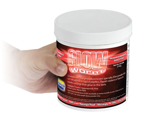 Glow Worm™ phosphorescent powders can be added to Smooth-On liquid plastics, rubbers and foams to create castings that glow in the dark after being charged with light. What sets Glow Worm™ powders apart from other glow-in-the-dark powders? Used as directed and after being light charged as recommended, castings made with Glow Worm™ powders will glow in the dark at least 10 times longer than other glow powders.Glow-in-the-dark castings are used for Halloween themed displays, home hobby projects, aquariums, store displays and more. These materials are also used for industrial marking, municipal safety applications and more. Creamsicle - Glow Color (Night) : Neon Orange- Appearance (Day) Orange