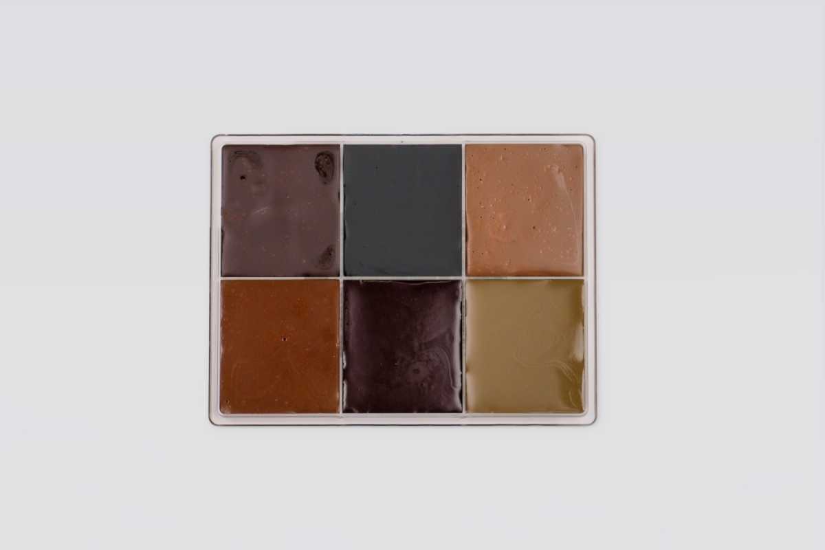 The MaqPro "Dark Foundation" palette; Contains 6 carefully selected colours from MaqPro in one palette. Made from MaqPro's traditional natural wax based formula called "Farde Créme".Highly pigmented color. The palette is the ultimate space-saver, giving you a wide range of Farde colours to carry. Contains the Farde Crémes:V5, CH.2, M7, 117, 59, 18255gr material