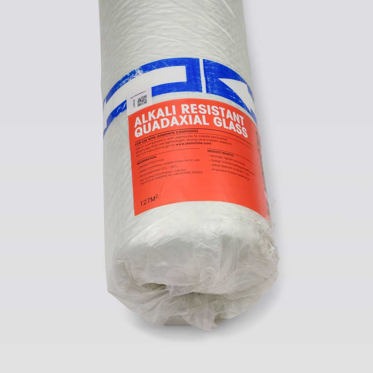 This type of glass reinforcement is tailor made for use with Jesmonite. It is based on the latest multiaxial glass reinforcement technology, which makes Jesmonite fibreglass laminates light, strong and fire resistant. It is constructed like a lace, with continuous glass strands in four axis (multiaxial) stitched together using the fireproof material Nomex®.There are very few free filaments, making the glass safe and comfortable to use. It can be accurately cut using scissors or roller cutters, and will conform to even the most complex shapes. This makes it especially suitable to mould making and panel construction.Please note that fibreglass matting (CSM) for use with solvent-based resins such as polyester is not suitable for use with Jesmonite material